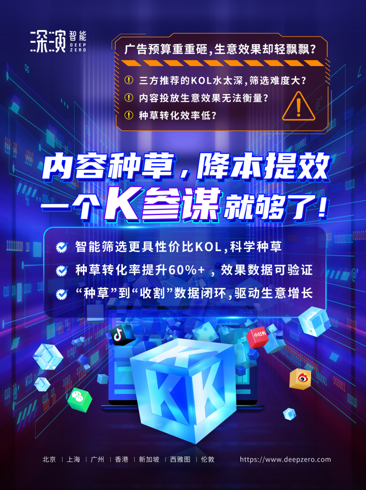 在多场景营销方面,石砳特别谈及ibet智能的K参谋(KOL全链路投放解决方案)产品,具有突破性打通内容种草+电商收割的完整转化链路和科学评估小红书、B站、微博、微信等平台的KOL投放数据的优势特点,K参谋可以帮助品牌优化KOL的使用和投放效果,让每一个KOL对生意结果的影响都清晰可见。